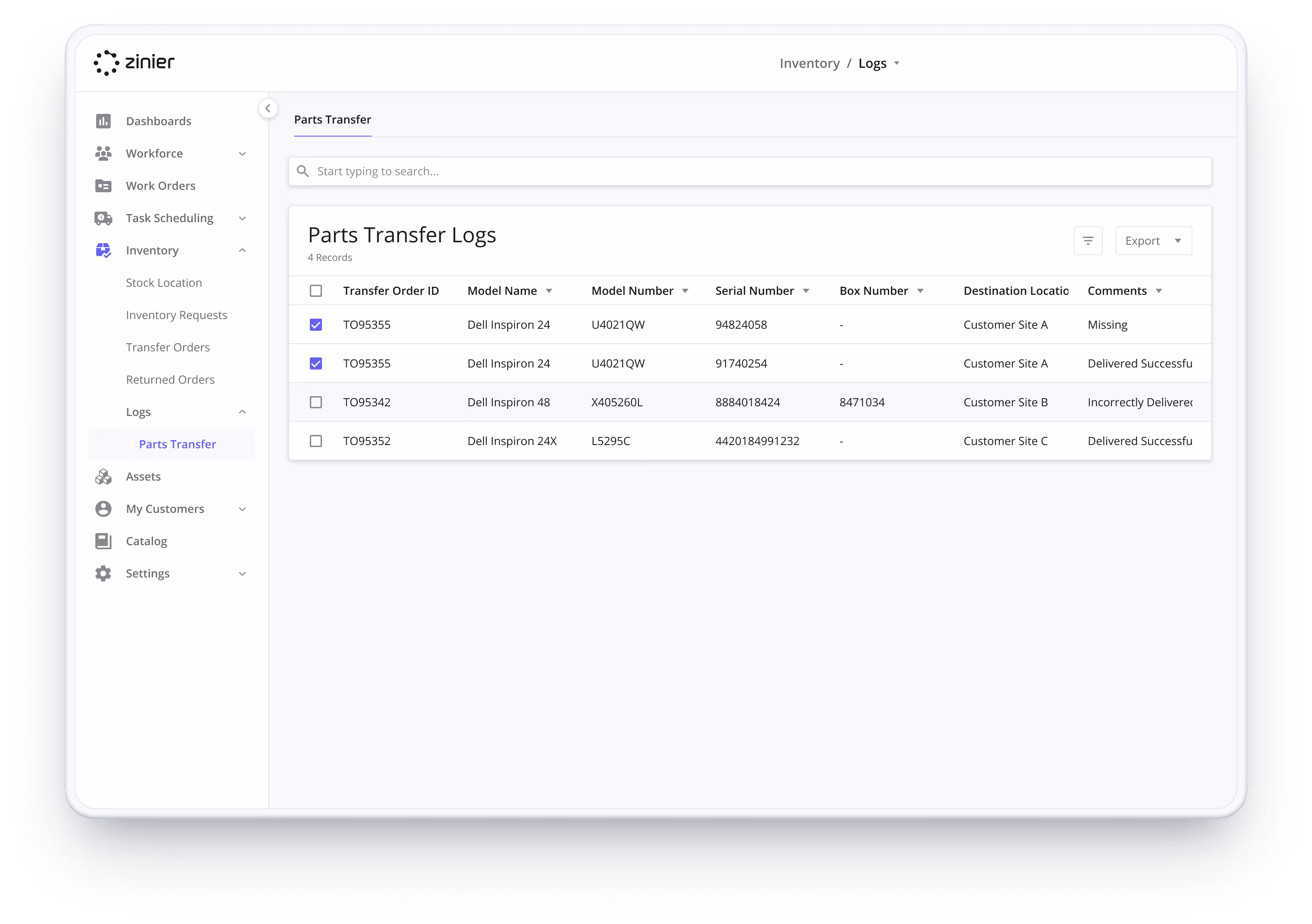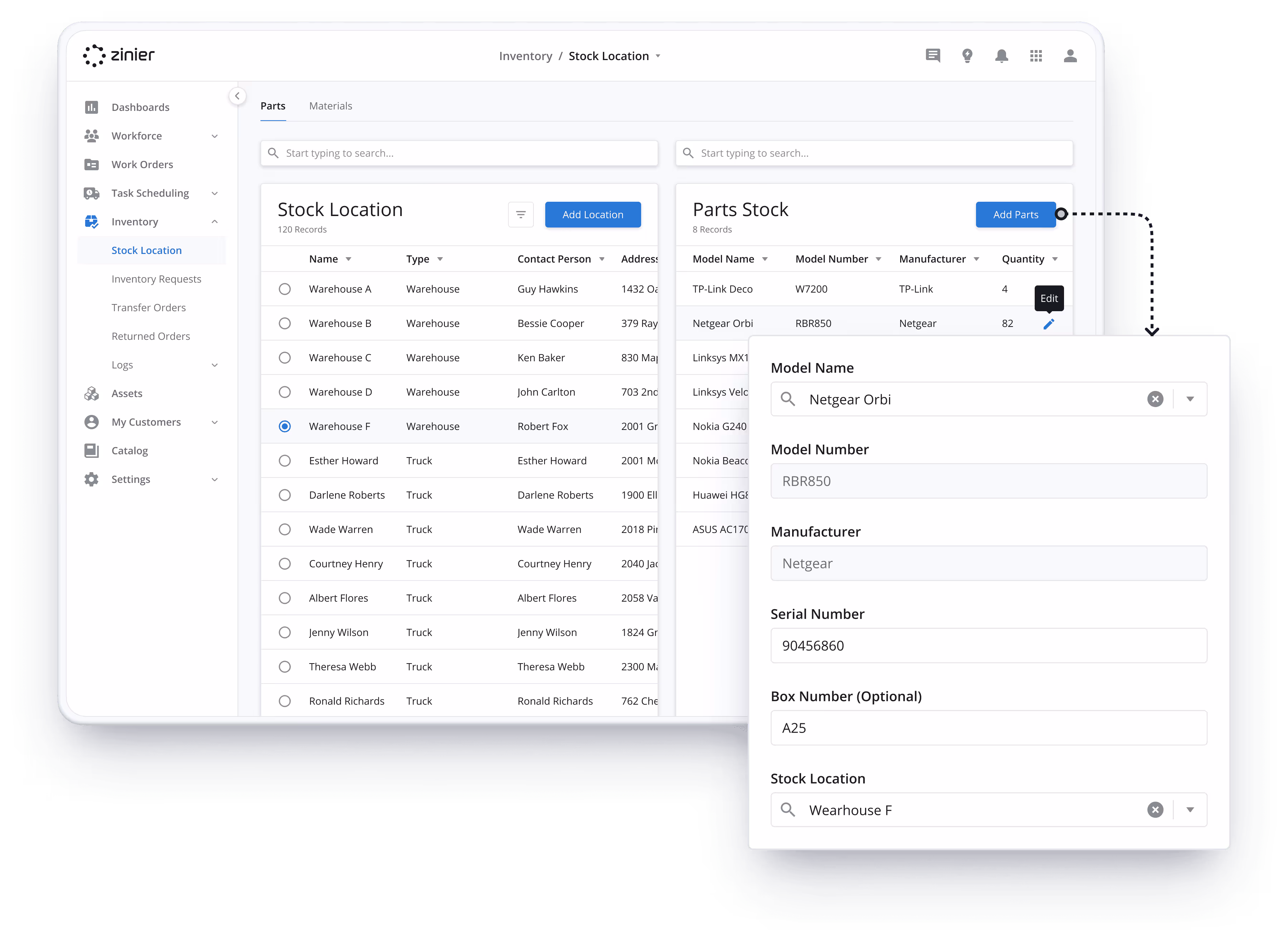 Here’s a preview of some of the key ways that Zinier’s new Parts & Inventory functionality addresses these problems.