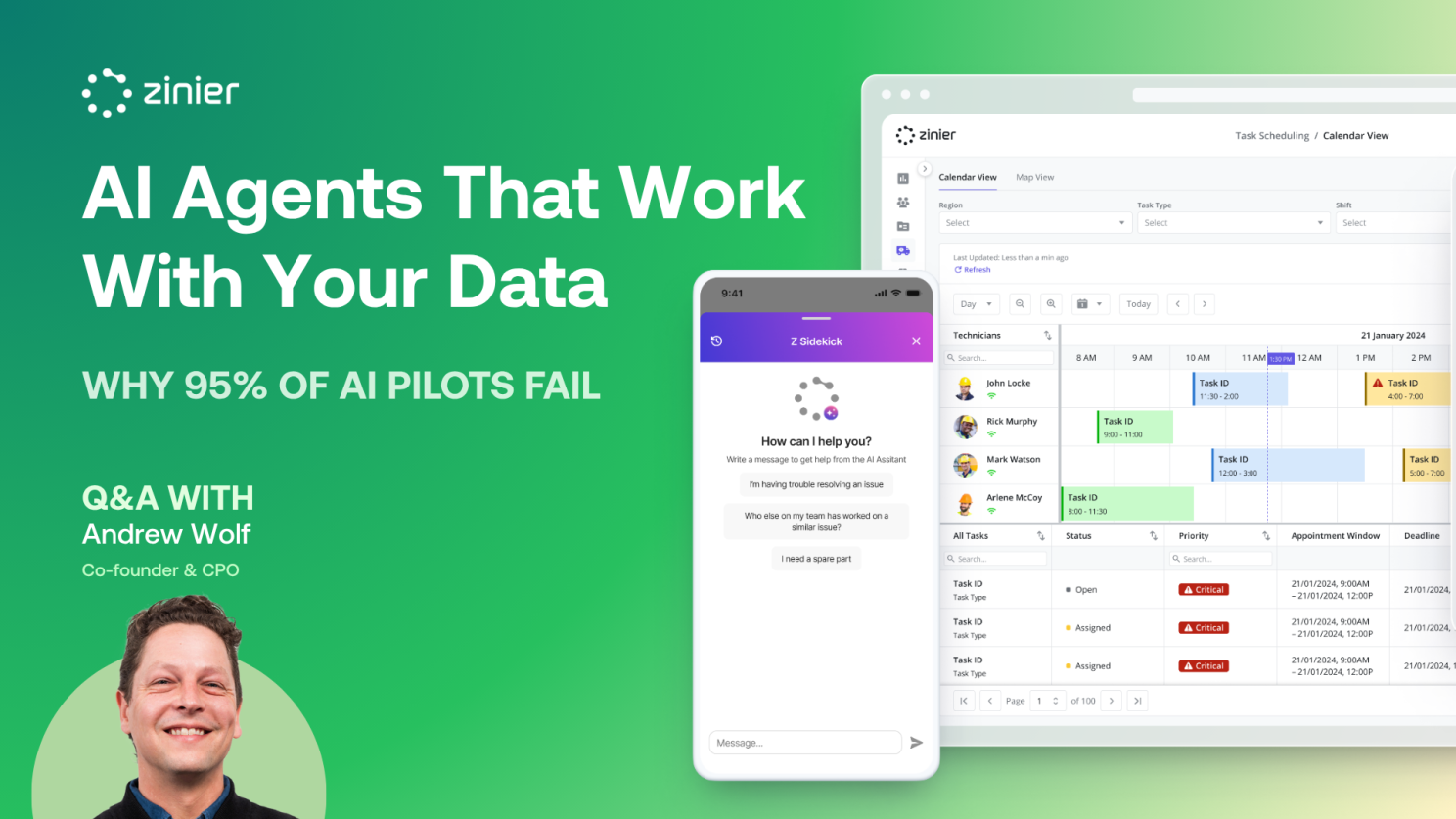 Kevin's message to operators struggling with these challenges emphasized Zinier's architectural difference: "Configurable AI agents, adaptive scheduling, and automation that aligns to your data and workflows, not the other way around."